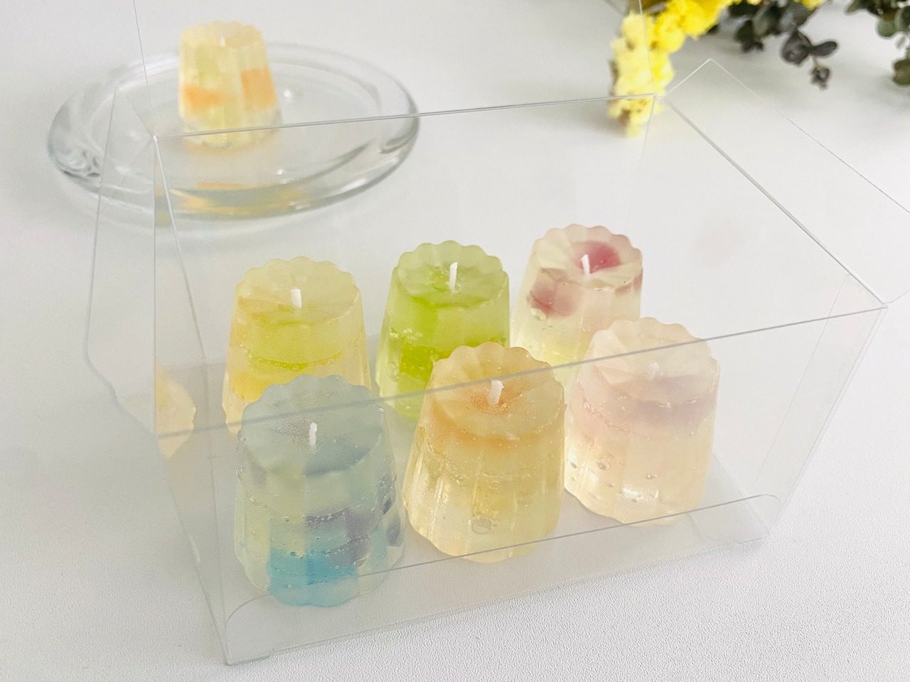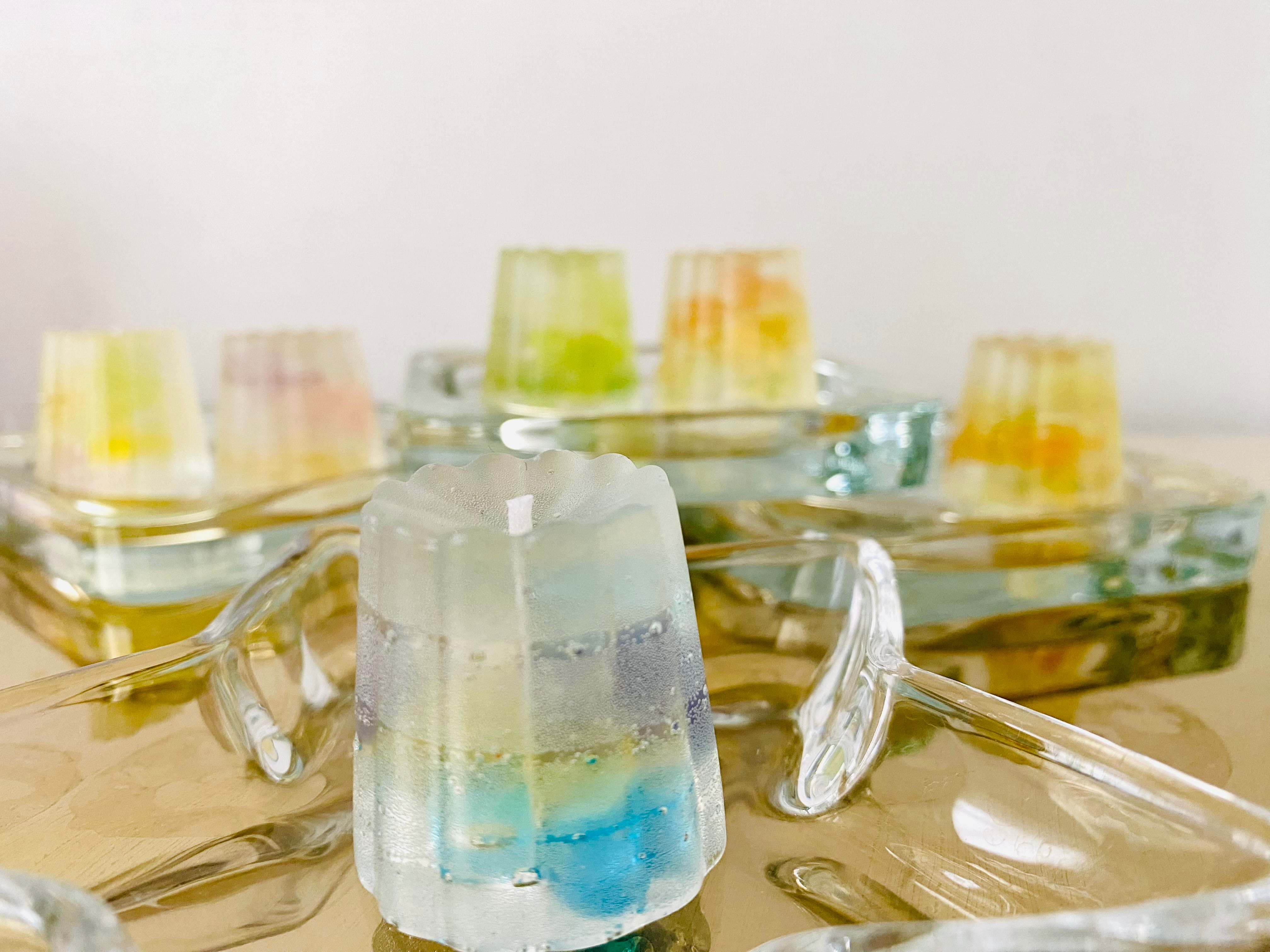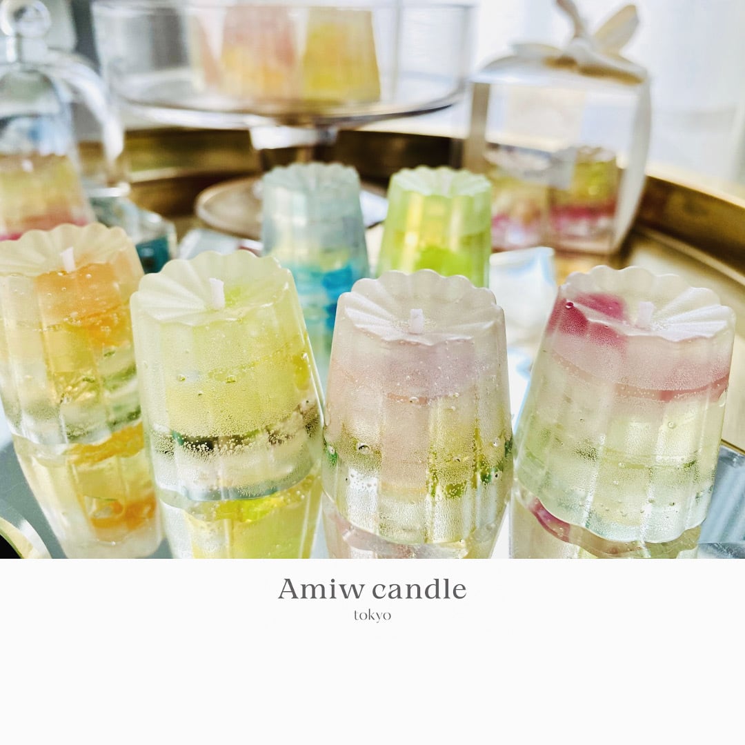 クリアジェルキャンドルミニカヌレは、カラフルなカラーバリエーションが楽しいキャンドルです。触るとぷるぷるとした触感がたまらなく愛らしい、キラキラ輝くアイテムです。