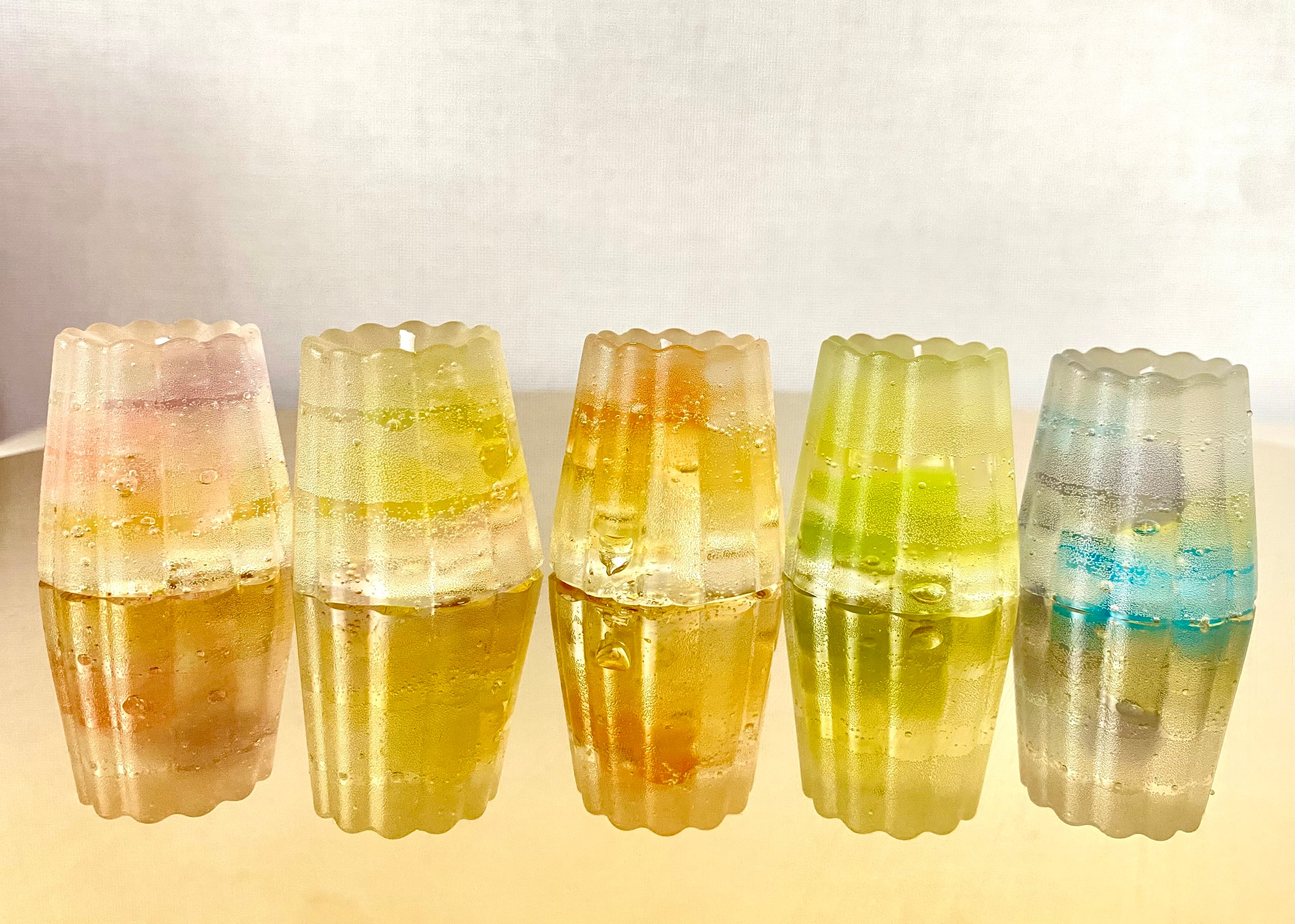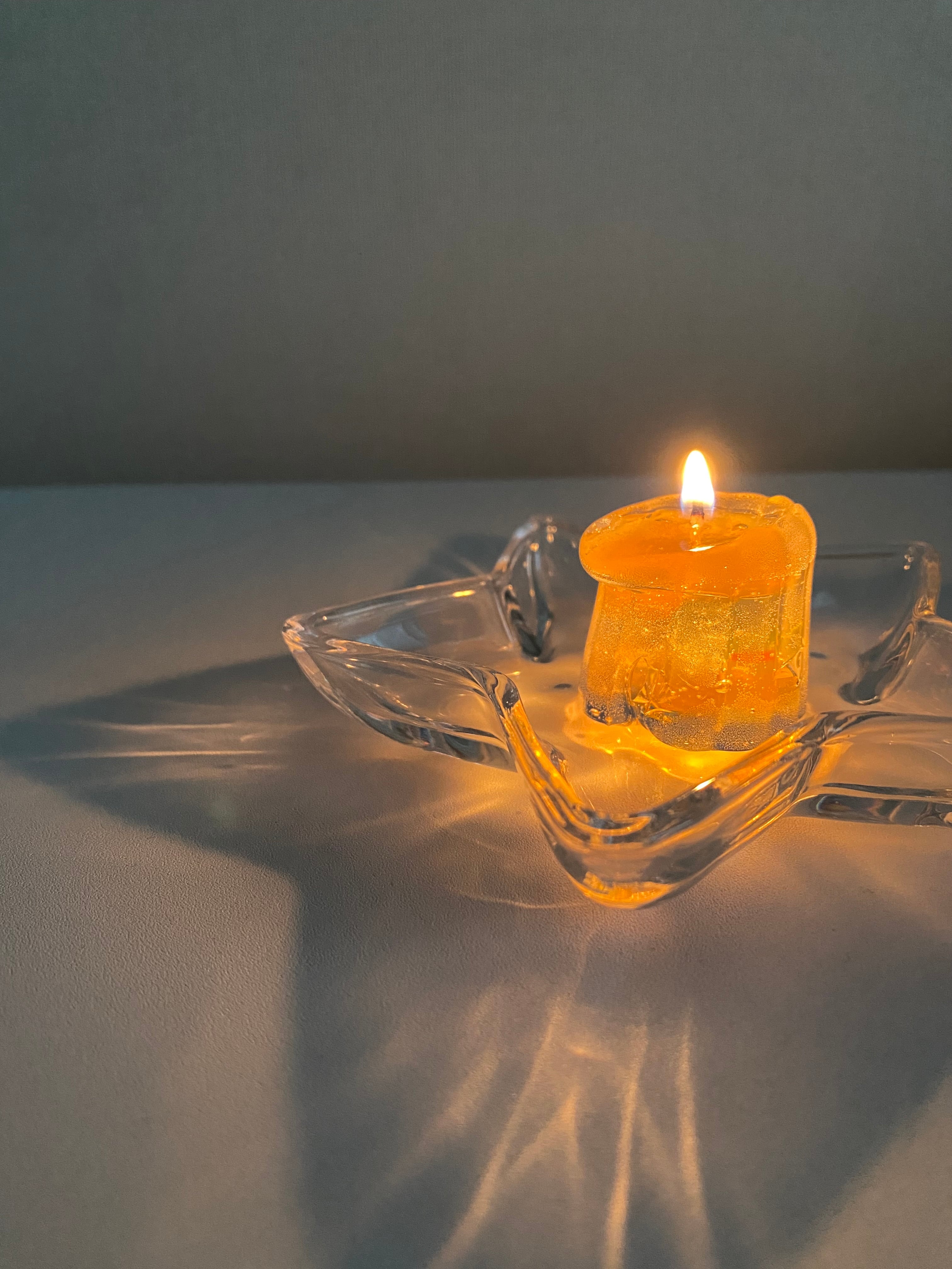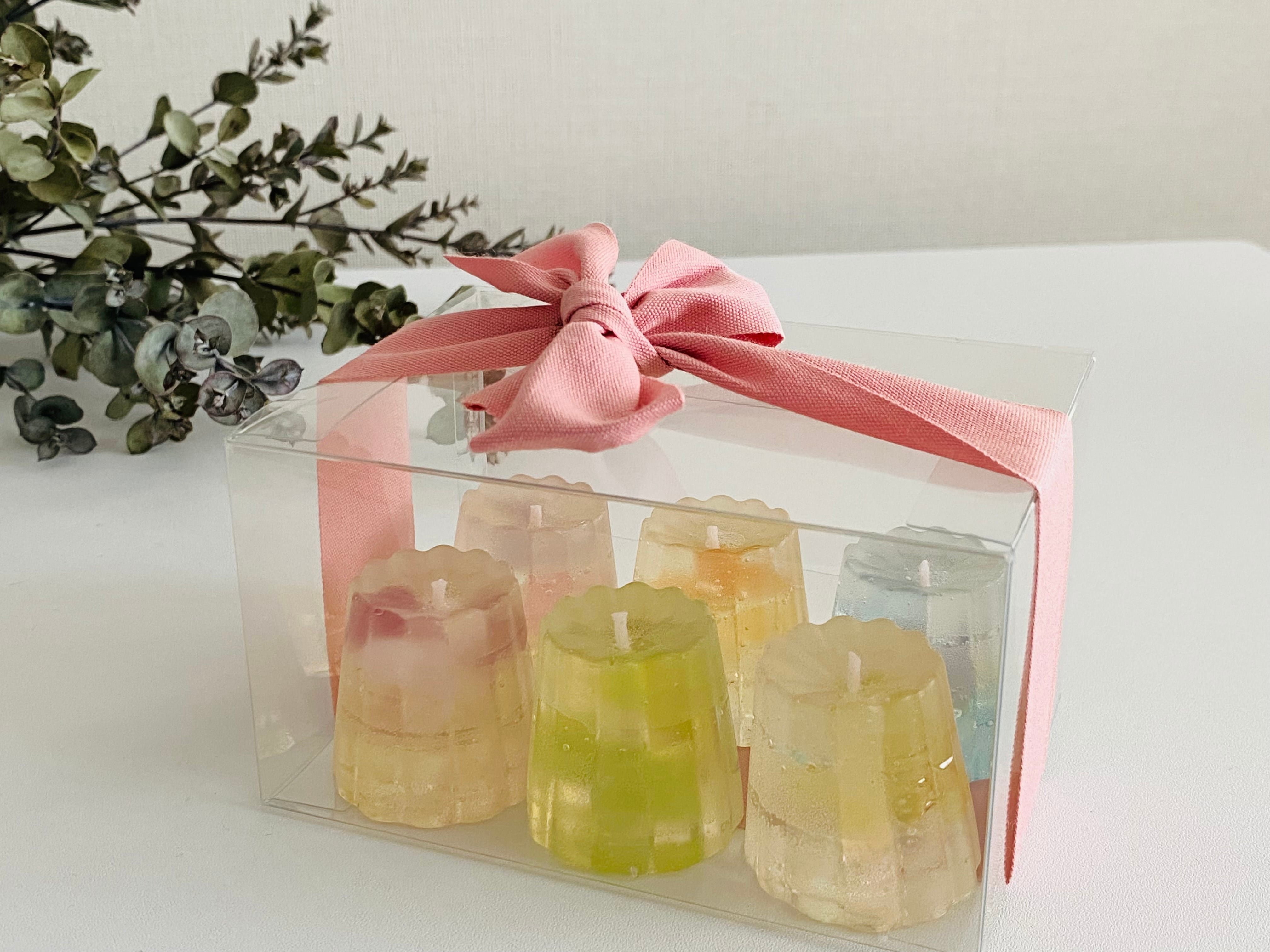 クリアジェルキャンドルミニカヌレは、カラフルなカラーバリエーションが楽しいキャンドルです。触るとぷるぷるとした触感がたまらなく愛らしい、キラキラ輝くアイテムです。