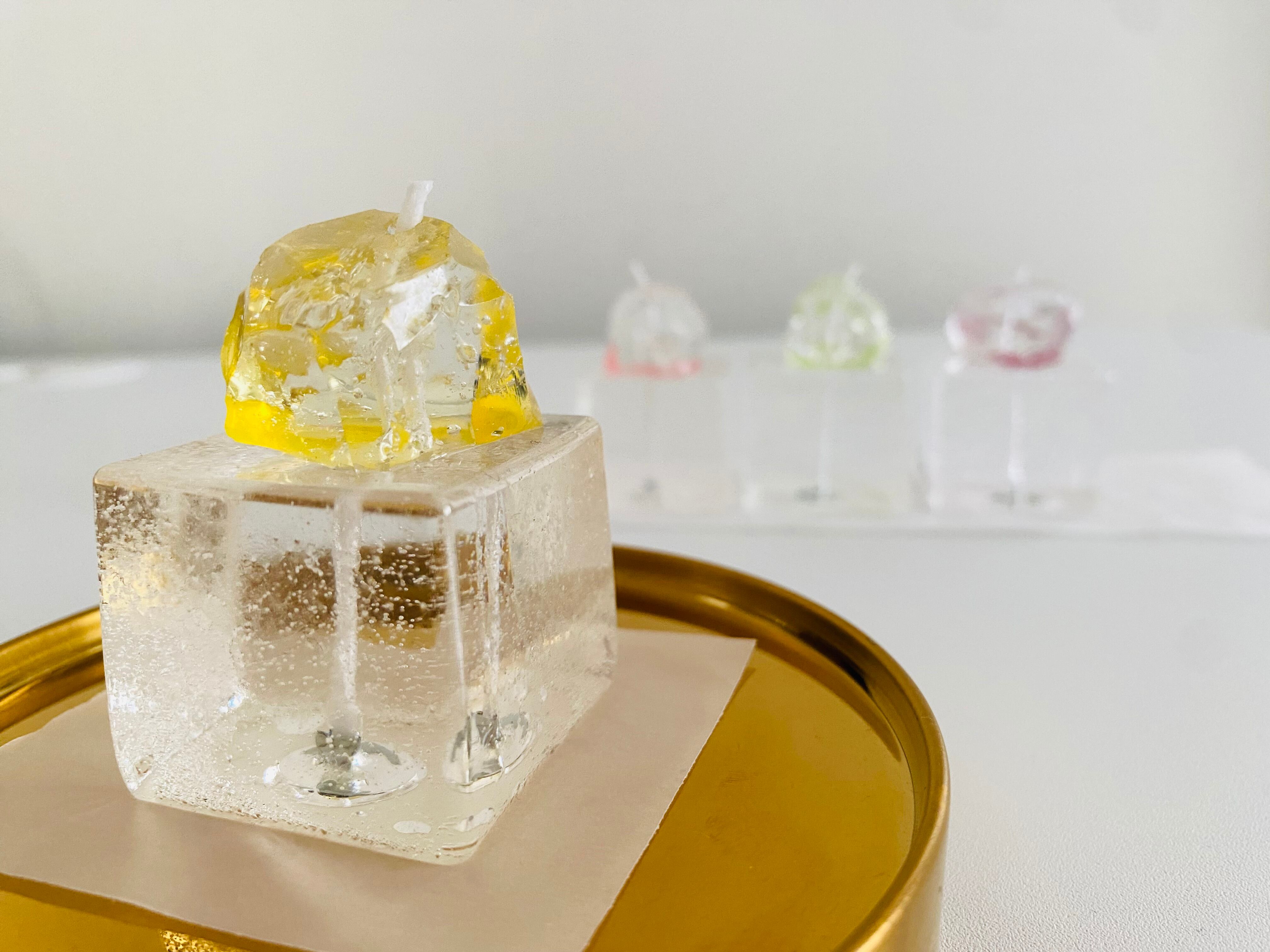 ぜひ、あなたの大切な空間を彩るイエロークリアストーンキャンドルの魅力を体感してみてください!火の取り扱いには十分ご注意ください。