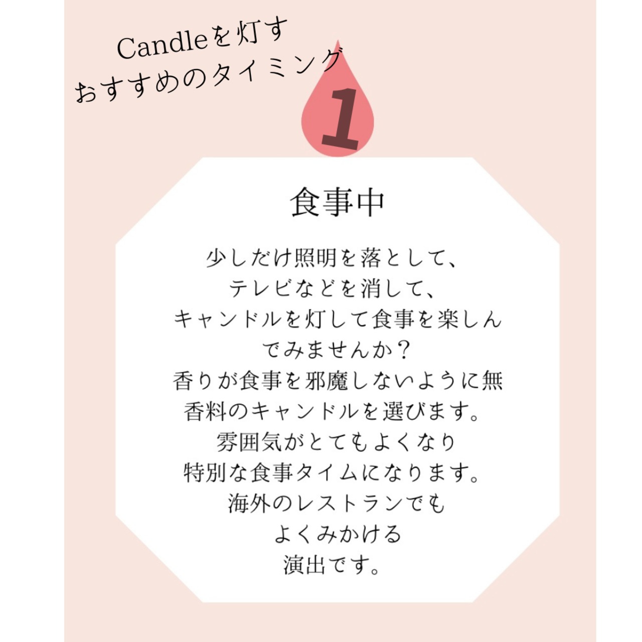 - キャンドルはガラスや陶器などの不燃性の耐熱皿やキャンドルホルダーなどの容器の上に置いてご使用ください。溶けだしたロウが机などを汚すことがあります。