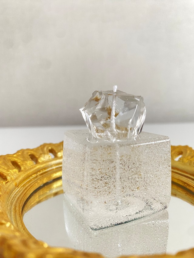 Color GEM candle シリーズ カラーストーンのようなキャンドル。 こちらのカラーはクリアカラー ロッククリスタルのようなストーンキャンドル スクエアのクリアキャンドルの上にカラーストーンのようなキャンドルを乗せて 台座に乗った宝石のようです。 まるで宝石を飾っているかのようなデザインは、インテリアのアクセントとしてもおすすめです。 天然のストーンのように一つ一つ形や色、が違います。 スクエア型のクリアボックスに入れて、リボンを付けてお届けいたします。 是非お好きなカラーをみつけてみてください。 こちらのキャンドルは無香料です。 ※火の取り扱いにはくれぐれもご注意ください。 キャンドルの安全なご使用方法 【重要】必ずお読みいただいてからご使用ください キャンドルはガラスや陶器などの不燃性の耐熱皿やキャンドルホルダーなどの容器の上に置いてご使用ください。溶けだしたロウが机などを汚すことがあります。 キャンドル本体にほこりなどが付いたら取り除いてからご使用ください。 カーテンの近くや、熱に弱いもの、引火するおそれのあるものが近くにないか確認し、風の吹かない平らな場所で、お子様やペットの手の届かない場所に置いて下さい。 エアコンや空調の風が直接当たらない場所でご使用ください。 キャンドルは火を灯したら側を離れないでください。 離れる際、就寝時は必ず火を消してください。 煙によって壁面や天井を汚す恐れがありますのでご注意ください。 火を消すときに水は絶対かけないでくだい。ロウが飛び散ると大変危険です。 ピンセットなどで芯をロウだまりに倒して消すと煤が出にくいです。横に倒して火を消したら芯はまっすぐに立てておきましょう。 芯はできるだけまっすぐにしましょう。斜めになると燃焼がうまくできないことがあります。 直射日光、紫外線、高温多湿になる場所での使用、保管はお避け下さい。 時間の経過とともに変質、変形、変色したりすることがあります 火の取り扱いには十分気を付けてキャンドルは安全に正しくご使用いただき お楽しみください。